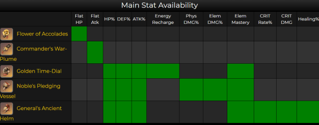- 4 Set Bonus – When elemental skill hits, increase 20% ATK, 20/30% shield strength for the entire party for 3 seconds. It is possible to stack this effect for 0.5 seconds per stack.