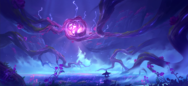 The plant life here has grown gnarled and unnatural from growing in uttermost darkness. Something twisted seems to be sealed here.