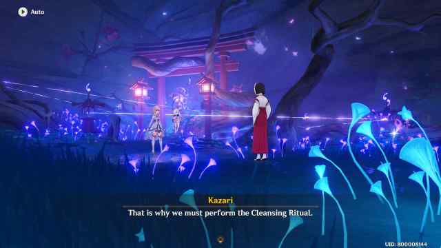 After that, the Kazari, NPC who gave you the quest will come and talk about the cleansing rituals and how there are many more places that requires cleansing.