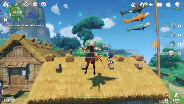 Saimon Eri and Futaba hint you to talk to Takeru. He is on the roof near the fish pole. After talking to Takeru, players have to look for clues around the Konda village.