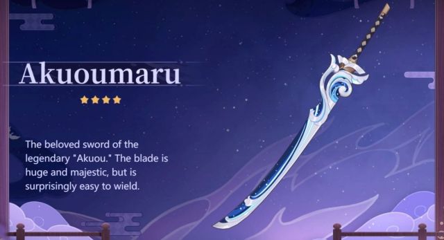 Akuoumaru is a four-star Claymore-type weapon that players can get from the Epitome Invocation banner right now. It was added to Genshin Impact with version 2.2 update. And, it will be available till the end of the first phase of the update.