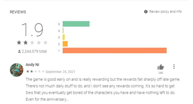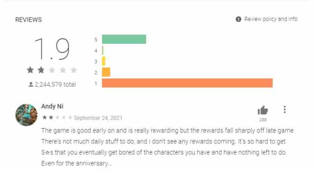 If you go through the one-star reviews, you can see they are relatively new and all have one thing in common — Genshin Impact anniversary and miHoYo’s stingy practices when it comes to rewards.