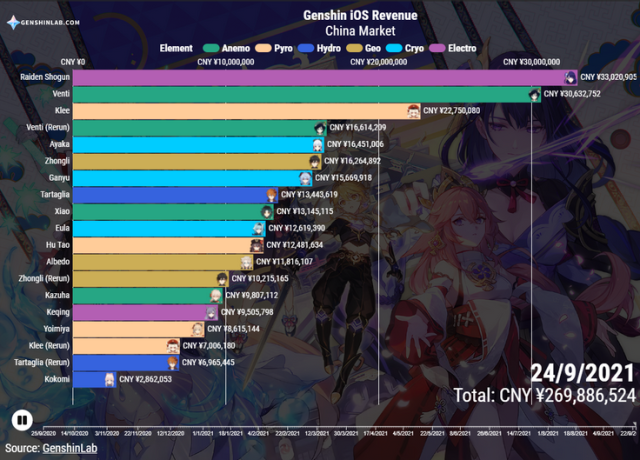 Whenever a new character event wish banner is released in Genshin Impact. The first-day revenue on just the CN server averages 10 Million USD. And, that is on the lower end.