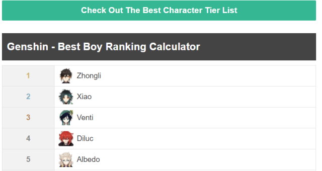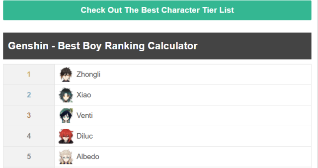 Genshin Impact Best Boy Ranking Simulator – Click Here.