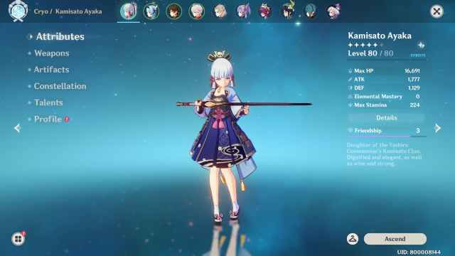 So I have been using Ayaka for almost 10 plus days in my main team. She is not yet completely built, but I know what I am aiming for.