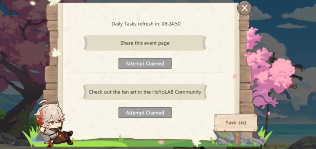 Players can get additional crafting attempts in Genshin Impact’s Distant Voyage web event by completing daily tasks.