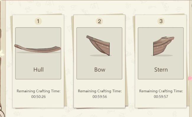 Once you have crafted all three parts of the boat at the current stage, you will move on to the next stage. To make it a little hard, miHoYo has introduced a crafting attempt system. You can craft parts only if you have crafting attempts.