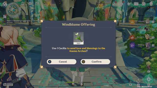 Jean will give you a list of flowers from which you can select one to offer the Anemo Archon. You can go with any flower as it doesn’t impact the quest. For me, I went with the Cecilia as it is one of Venti’s major ascension materials.