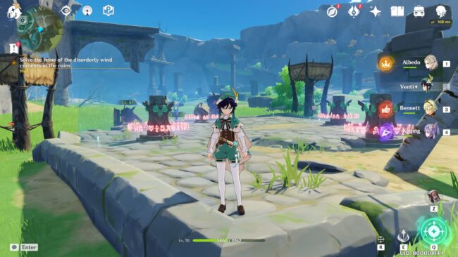 To solve the issue of the disorderly wind currents in the Ruins, players first have to defeat all the nearby enemies to remove the wind shield blocking the puzzle.