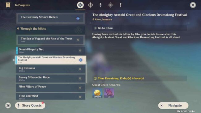 To start The Almighty Arataki Great and Glorious Drumalong Festival event in Genshin Impact, you have to complete the event quest that goes by the same name as the event.