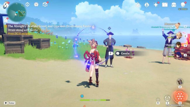 Go to the Amakane Island, and once you are there, “Talk to Hirohiko, the Yashiro Commission Representative.” He will ask you to go to the “Go to the tidal flats on northwest Amakane Island.” Follow the quest marker, exhaust your dialogues with Arataki Itto, and then “Drum along with Genta” to complete the event introduction.