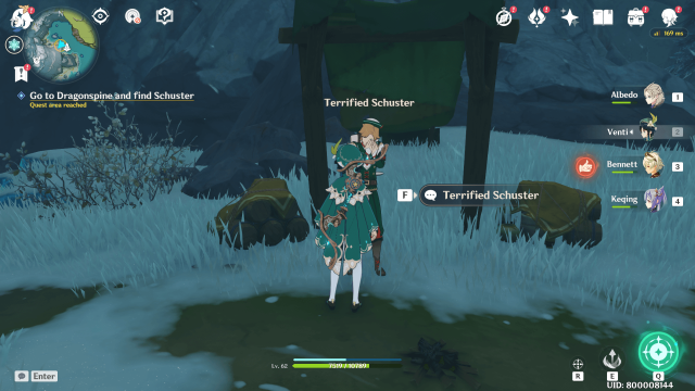 Teleport to Dragonspine Statue of Seven and glide your way towards Schuster’s location.