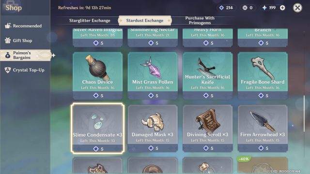 If you are in a hurry, then you can obtain Slime Condensate from Paimon’s Bargain shop.