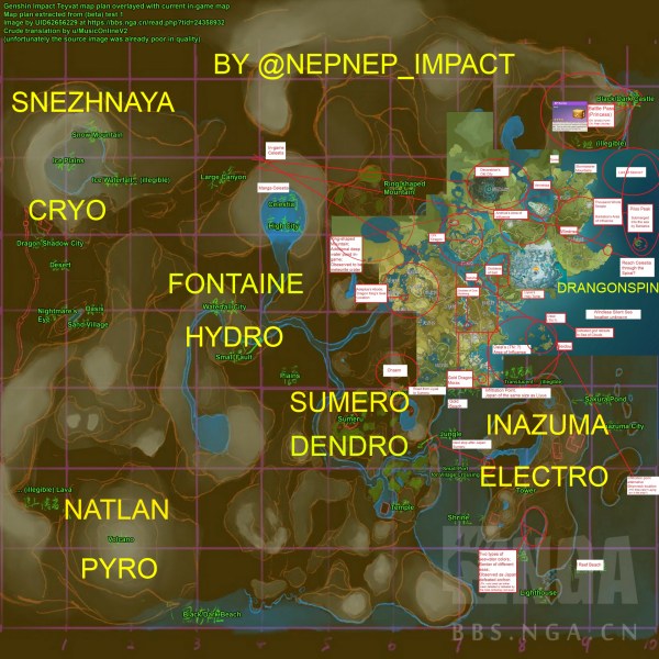 About a month ago, a Twitter and Reddit user who goes by the name NepNep shared the translated full map of Genshin Impact that he found over a Chinese game discussion forum BBS NGA.