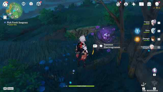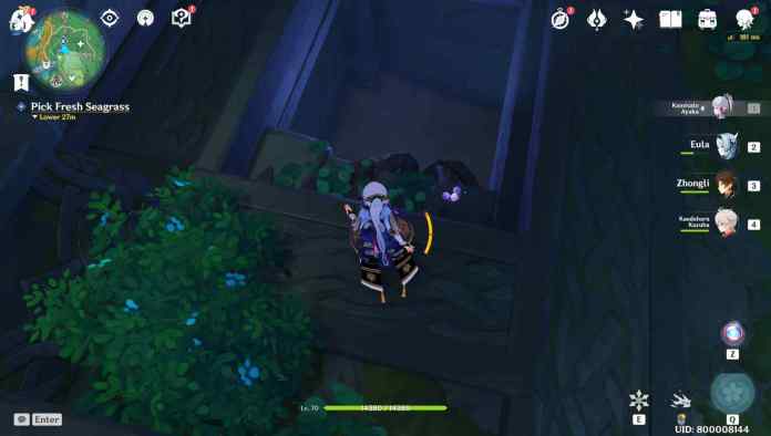 To pick up Sea Grass, you have to un-flood the dungeon area. And to do that, you need an Electrogranum. Right near the drop shaft, you will find a Thunder Sakura Bough. Summon an Electrogranum and glide down inside the barrier.