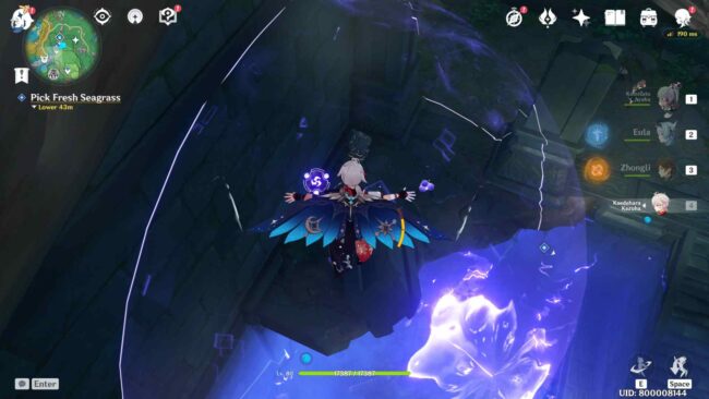 Glide down the shaft, defeat the hydro slimes and collect the fresh Seagrass.