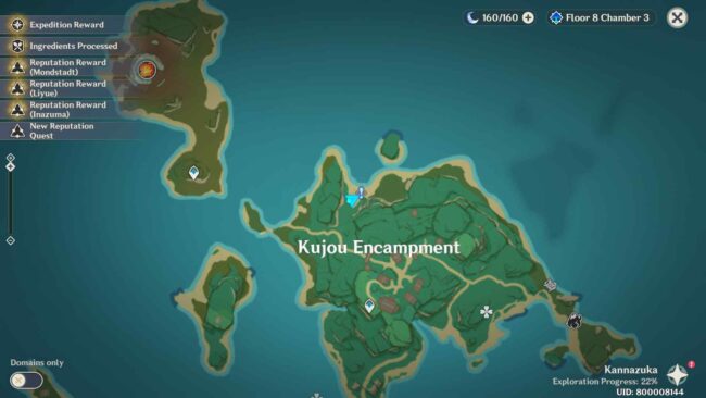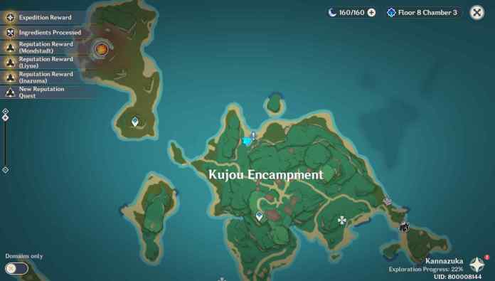 You can find the third Gourmet Supremos world quest north of Kujou Encampment. Travel to the nearest waypoint and make your way to the above player icon location.