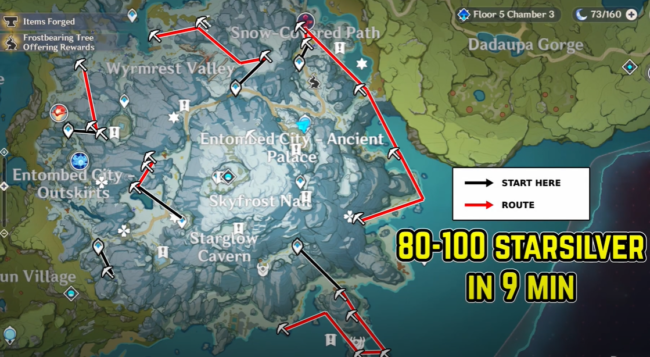 Starsilver is one of the most important forging material in Genshin Impact that was added with the version 1.2 update. Players can use Starsilver Ore for crafting or forging various items ranging from Weapons, Enhancement Ores, and Potions. In this article, we will talk about the most efficient way to farm Starsilver. We also share the Starsilver Farming route that we personally use to get around 80-100 Starsilvers in one run.