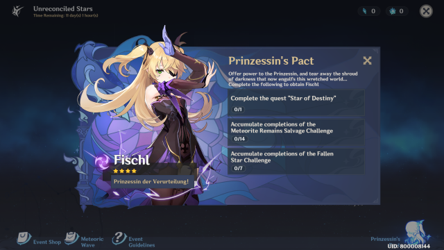 To get Fischl for free players have to complete the Prinzessin’s Pact that comes with three objectives-