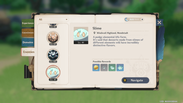 Using the adventure book is yet another way to find and farm slimes in Genshin Impact. Though we won’t lie, it is not the most ideal way to farm slimes as you will be traveling a lot, just to kill one or two slimes.