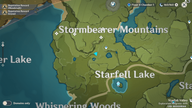 Travel to the Stormbearer Mountains teleport waypoint, and make your way towards the player icon, as shown in above map. There you can find three Geo Slimes.