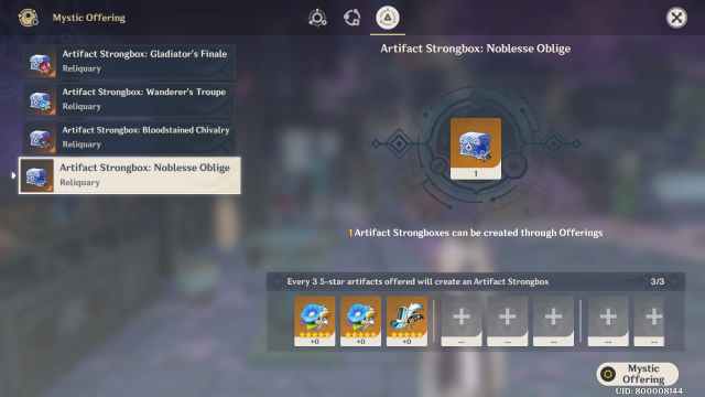 - There you will find “Artifact Strongbox: Noblesse Oblige”. Click on it.