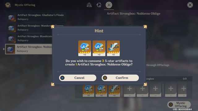 Keep in mind, once you sacrifice artifacts to exchange for Noblesse Oblige or any other set, you cannot get them back.