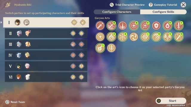 For every team, players can configure certain skills that complement the teams’ damage output. You can either go through all the skills and configure them based on the characters on the team. Or, you can be like us and just put random skills. [Done for the testing purpose]
