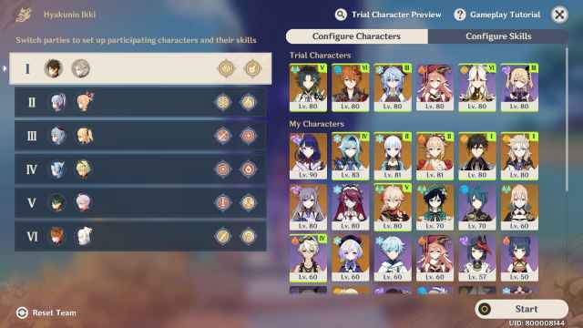 Once that is done, players have to form six teams, each of two characters. There are six trial characters, just in case if you don’t have 12 characters or if they are not raised enough.