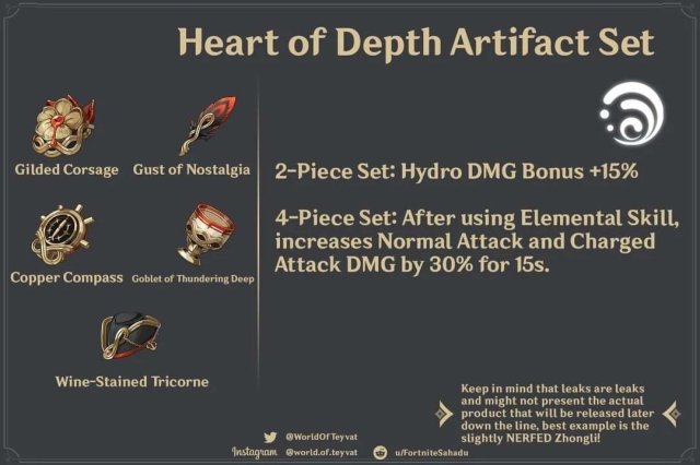 According to the leaks, the new Heart of Depth Artifact set is going to be introduced in Genshin Impact with the upcoming update 1.2.