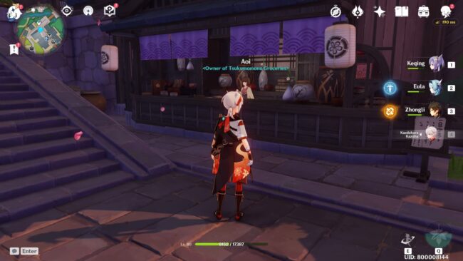 Inazuma General Store is owned by an NPC called Aoi and the store is called Tsukumomono Groceries.