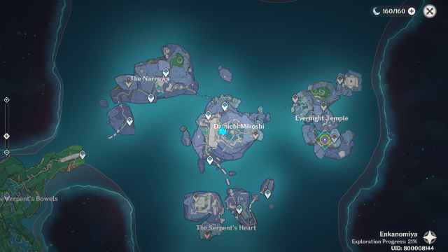 The new area, Enkanomiya, is divided into five sections, namely The Narrows, Dainichi Mikoshi, Evernight Temple, The Serpent’s Heart, and The Serpent’s Bowel.