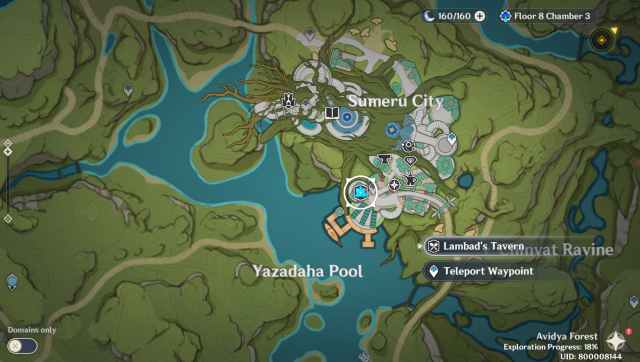 Lambad’s Tavern is located near the Avidya Forest Waypoint in Sumeru City. Here is the exact location of the Tavern.