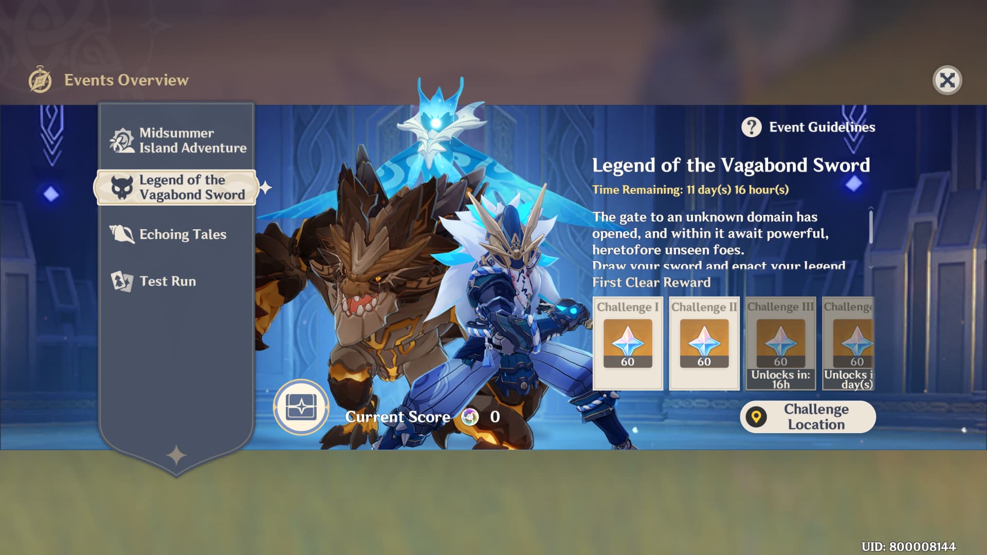Legend of the Vagabond Sword event is perfect for both whales and free-to-play players to check their combat readiness in Genshin Impact. Thanks to the different bosses that players have to defeat with each new challenge and the difficulty multipliers to make the fight extreme or to a level that players are capable off.