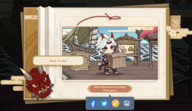 At the end of each task, players get a picture to share to get Primogems and character ascension material. The only tip that we can give you for this event is that you actually don’t have to share the pictures on your social media to get the rewards.