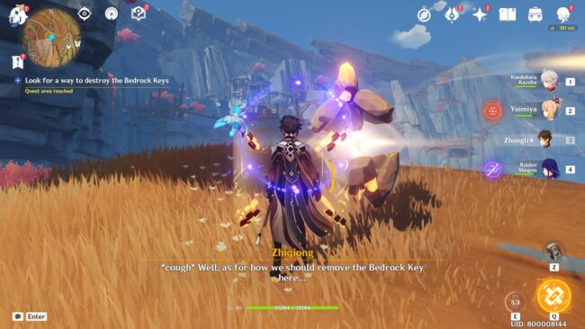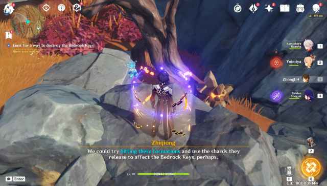 During the Surreptitious Seven-Star Seal Sundering world quest in Genshin Impact, players are tasked to “Look for a way to destroy the Bedrocks.”