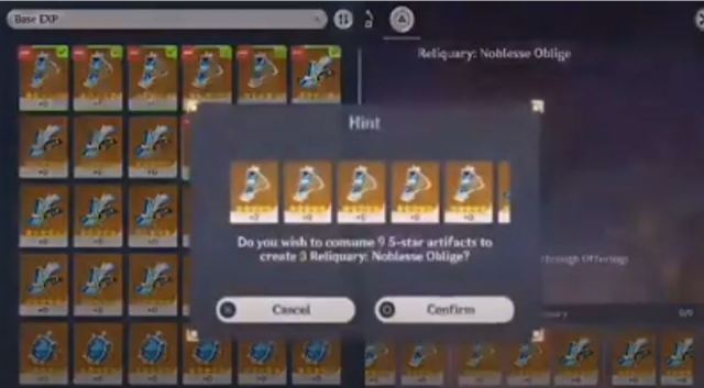 Writer’s Opinion: And that is how you exchange nine useless artifacts that cost you tons of resins to get three random useless artifacts – that again is going to be used to level up other artifacts or as an offering.