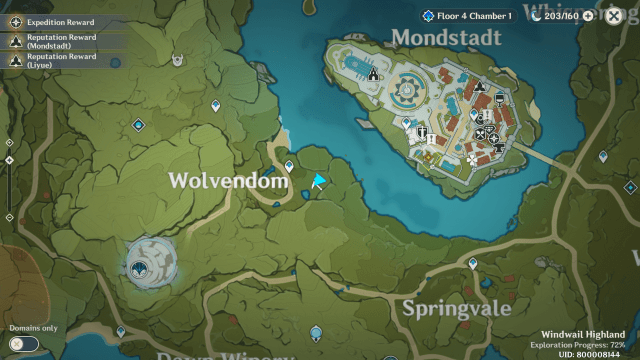 Travel to Wolvendom teleport waypoint and make your way towards the player icon location as shown in the above Genshin Impact screenshot.