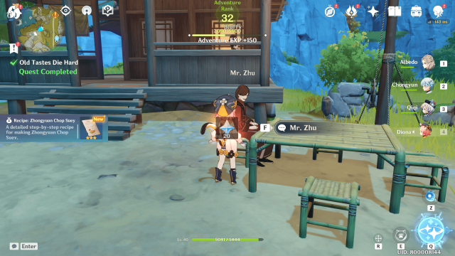 Now, you finally have a great dish recipe – Zhongyuan Chop Suey, alongside other rewards such as 150 Adventure XP, 20 Primogems, and 20K Mora.