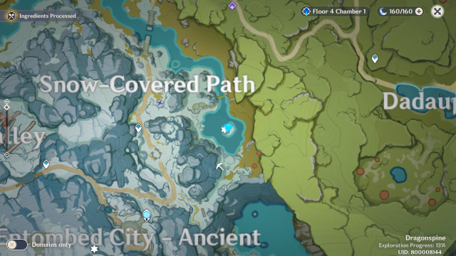 To get the Scribe Box in Genshin Impact, players have to travel to the waypoint – left of Starglow Cavern, near the below-marked location.