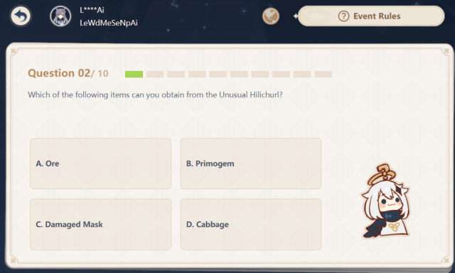 In the wake of that, we have created a wiki guide using the questions and answers to Paimon’s Quiz available on the internet and our own experience with the event.