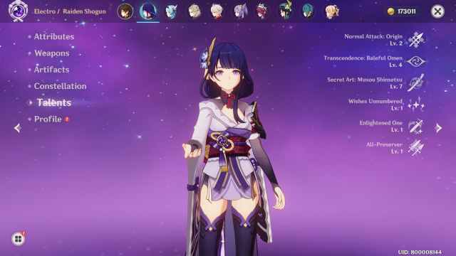 Players who are low on talent books and mora should focus on raising Baal’s Secret Art: Musou Shinsetsu. The second priority should be given to her elemental skill, Transcendence: Baleful Omen.