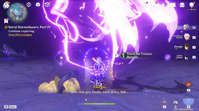 Defeat the Thunder Manifestation boss and touch the Trounce Blossom to claim the rewards using forty original resins.