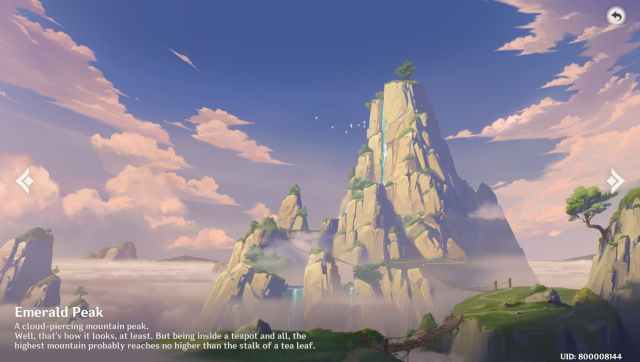 A cloud-piercing mountain peak with waterfalls and other beautiful vistas. I personally chose Emerald Peak as my starter realm style as it serene environment is up to my liking.