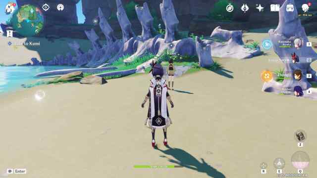 As we mentioned earlier, players can get the Solitary Sea Beast world quest by talking to Kumi. She is found near the giant fishbone found south of Mouun Shrine. To get there, teleport to Watatsumi Island Statue of Seven and head towards the beach. There you can find Kumi.
