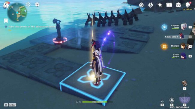 Anisa will ask you to solve the Watatsumi Statue puzzle. To do that, first, you have to activate two electro and one hydro pillar found in the vicinity.