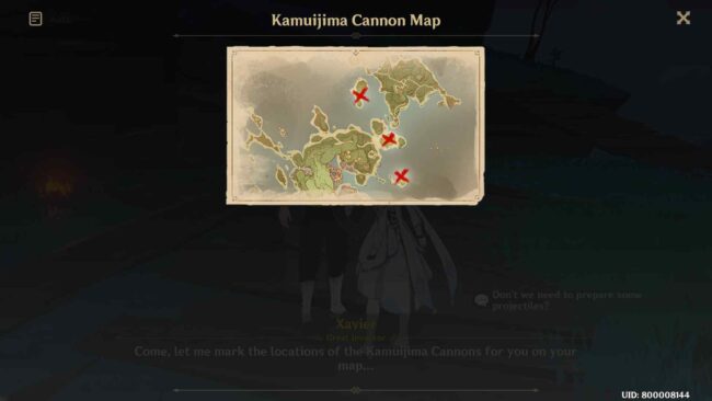 Xavier will ask you to use the Kamujima Cannons to destroy the rifts. He will give you a map with the cannon locations.