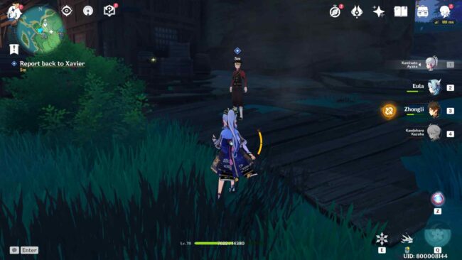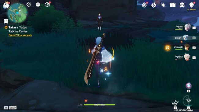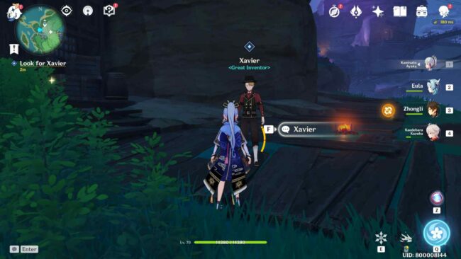 After destroying the barrier, when you return to Xavier, you have to fight the Fatui. Once that is done, talk to Xavier.