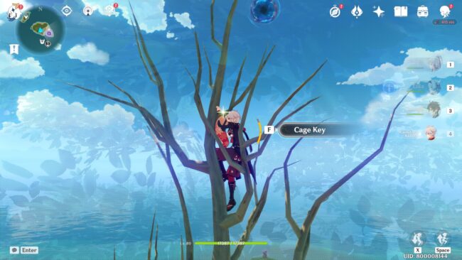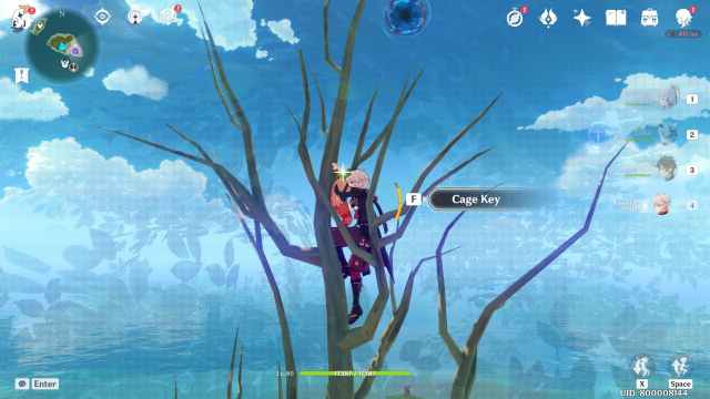 The key to the cage is found on the tallest tree. Near to the locked NPC.