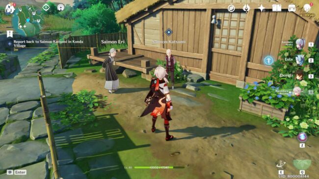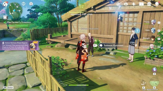 Go back to Konda VIllage and talk to Saimon Katsumi. After a series of dialogues with Jirou and Katsumi. Players will complete the Farmer’s Treasure quest.